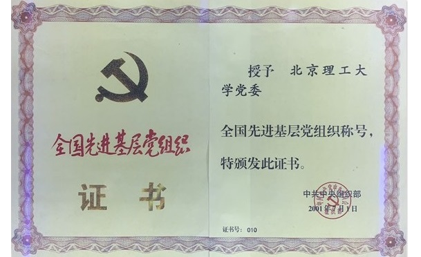 2001年7月1日,庆祝中国共产党成立80周年大会在人民大会堂召开,我校党委荣获“全国先进基层党组织”称号。